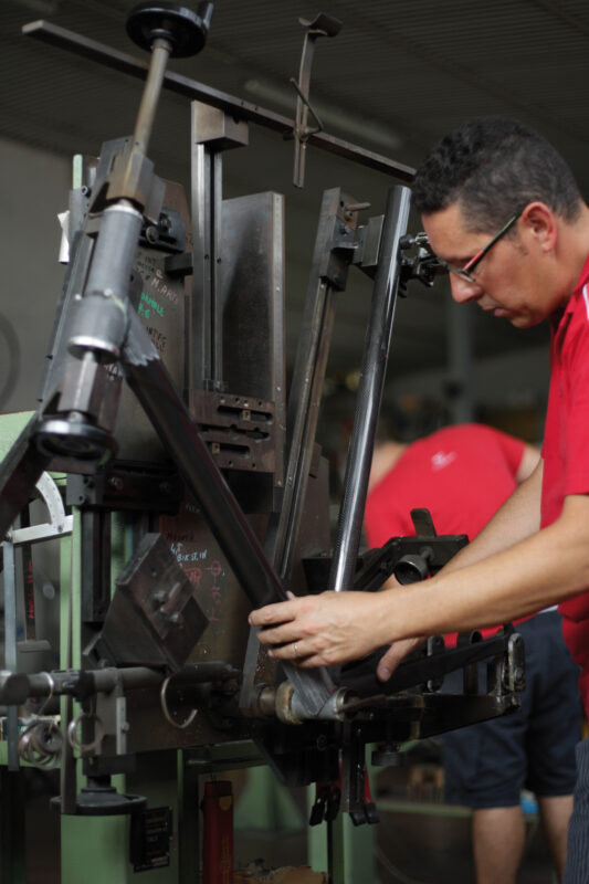 CIOCC – For the cycling enthusiast, it is a name that recalls the beginning of the great Italian tradition of hand-crafted racing frames. It was about 60 years ago that Ciocc started producing small numbers of framesets for some of the more demanding local pro riders, out of a small shop located in the province of Bergamo, just a few miles from the large city of Milan. It grew steadily since then, picking up great success stories such as the 1977 World Champponship race in San Cristobal, Venezuela and a strong presence at the 1980 Moskow Olympic Games. Teams like Santini / Conti, Italbonifica and Navigare were equipped with Ciocc bicycles, reaching international success. The company has undergone changes over the years, in the early 1990’s in particular. Stefano Bonati, a young apprentice at the time, is now part owner, therefore carrying on the tradition of craftmanship, exceptional quality and attention to detail that propels Ciocc into the modern age of carbon frames of today.